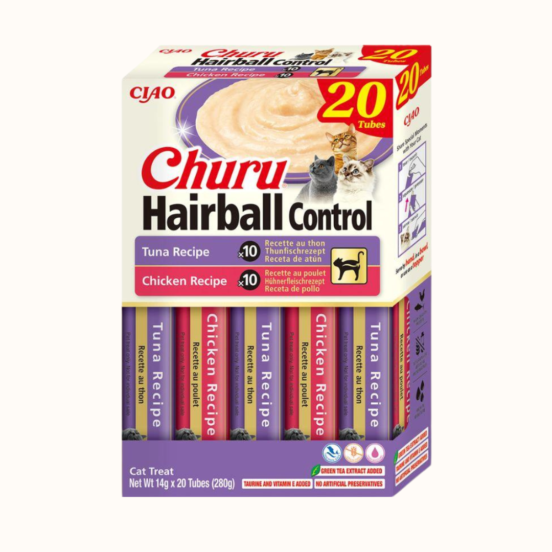 Inaba Cat Churu Purée Hairball je idealna izbira za vse mačke, ki si zaslužijo nekaj posebnega – nekaj, kar je obenem okusno in koristno za njihovo zdravje. Ta kremasta poslastica je obogatena s celulozo in hitosanom, ki pomagata pri zmanjševanju nastanka kep dlake, hkrati pa je visoko vlažna, kar spodbuja pitje in splošno hidracijo.