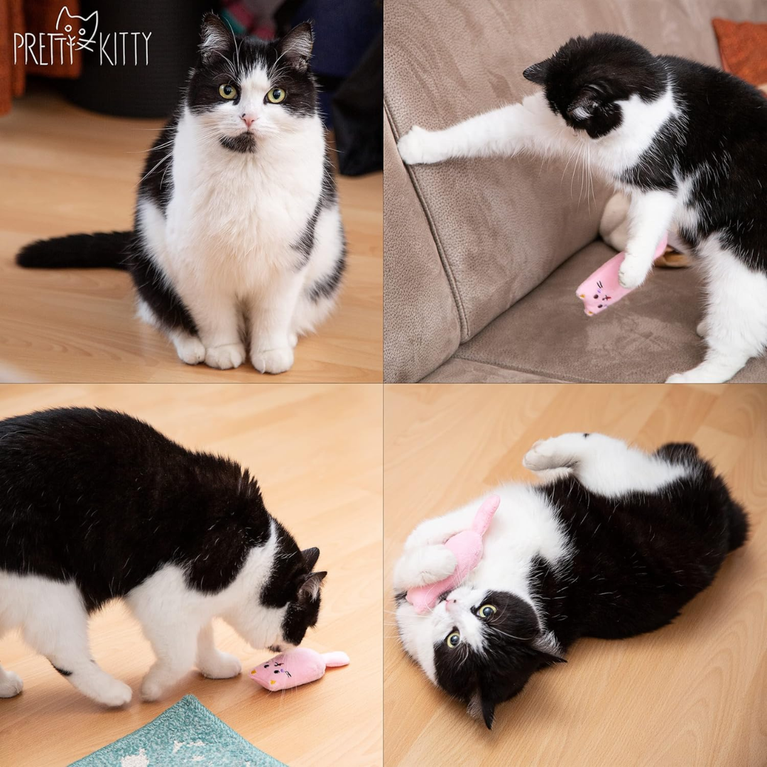 Če doma iščeš igračo, ki je hkrati nežna za crkljanje in dovolj zanimiva, da prebudi lovski nagon, je Mačja igrača z valeriano Pretty Kitty odlična izbira.