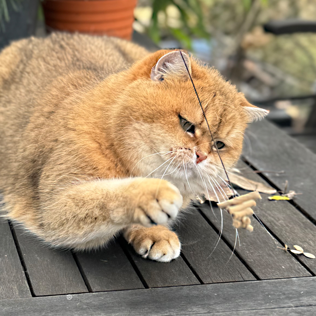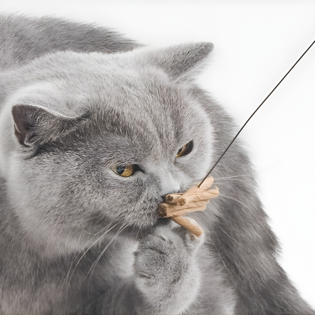 Ko igračo držiš med palcem in kazalcem, se žica premika skoraj sama od sebe. Mačka si gibanje hitro razloži kot ptico, metulja ali miško – in začne akcijo. To je super, ker igrača ne zahteva posebnih baterij, nastavitev ali dodatkov. Samo ti + mačka + 5 minut igre, pa je razlika v energiji in razpoloženju očitna.