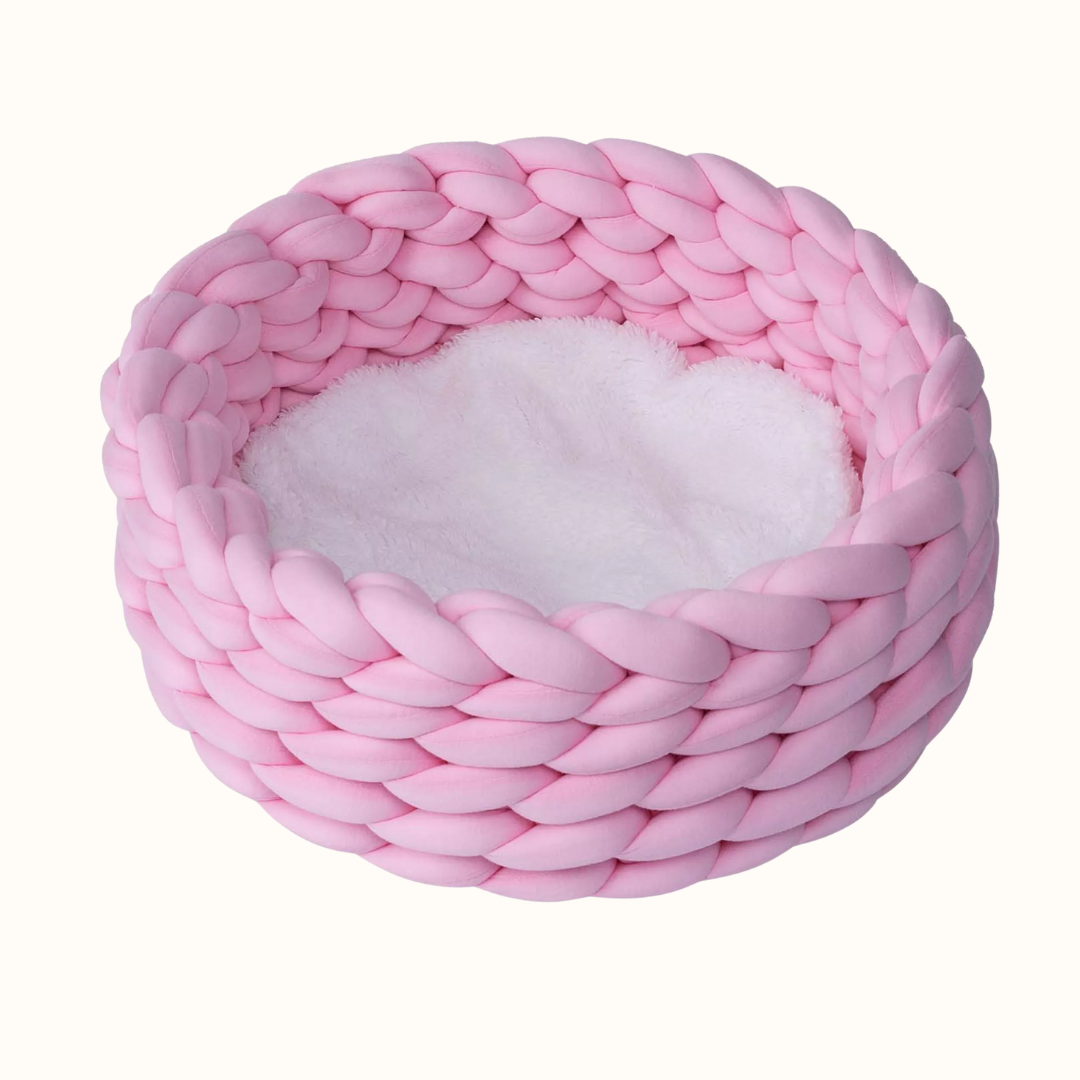 Zunanji del ležišča je zasnovan kot stabilna pletena košara, ki ohranja svojo obliko tudi pri vsakodnevni uporabi. Nežna roza barva prostoru doda topel, umirjen poudarek in se lepo poda v spalnico, dnevno sobo ali mačji kotiček.