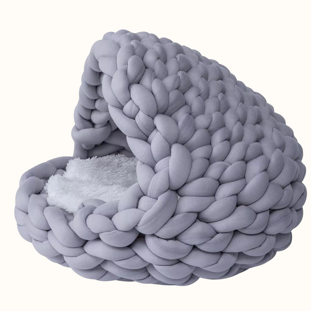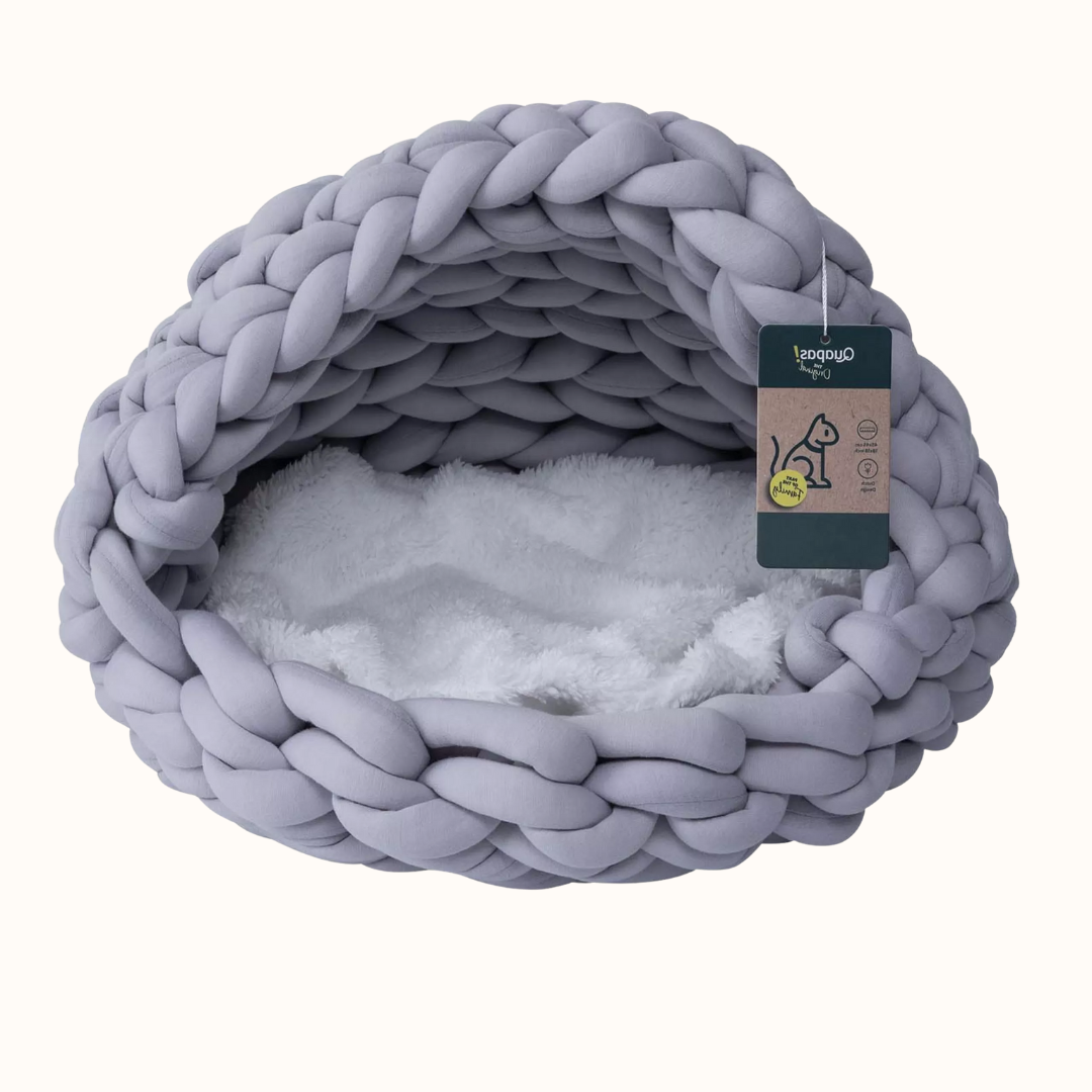 Zunanji del ležišča je pleten in mehak, hkrati pa dovolj stabilen, da iglu ohranja svojo obliko. Svetlo siva barva deluje nežno, čisto in se lepo poda v različne bivalne prostore, ne da bi vizualno izstopala. Ležišče je hkrati funkcionalno in estetsko, zato ga brez težav postaviš tudi v dnevno sobo.