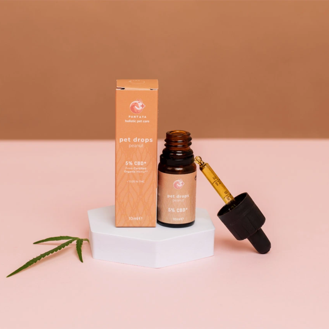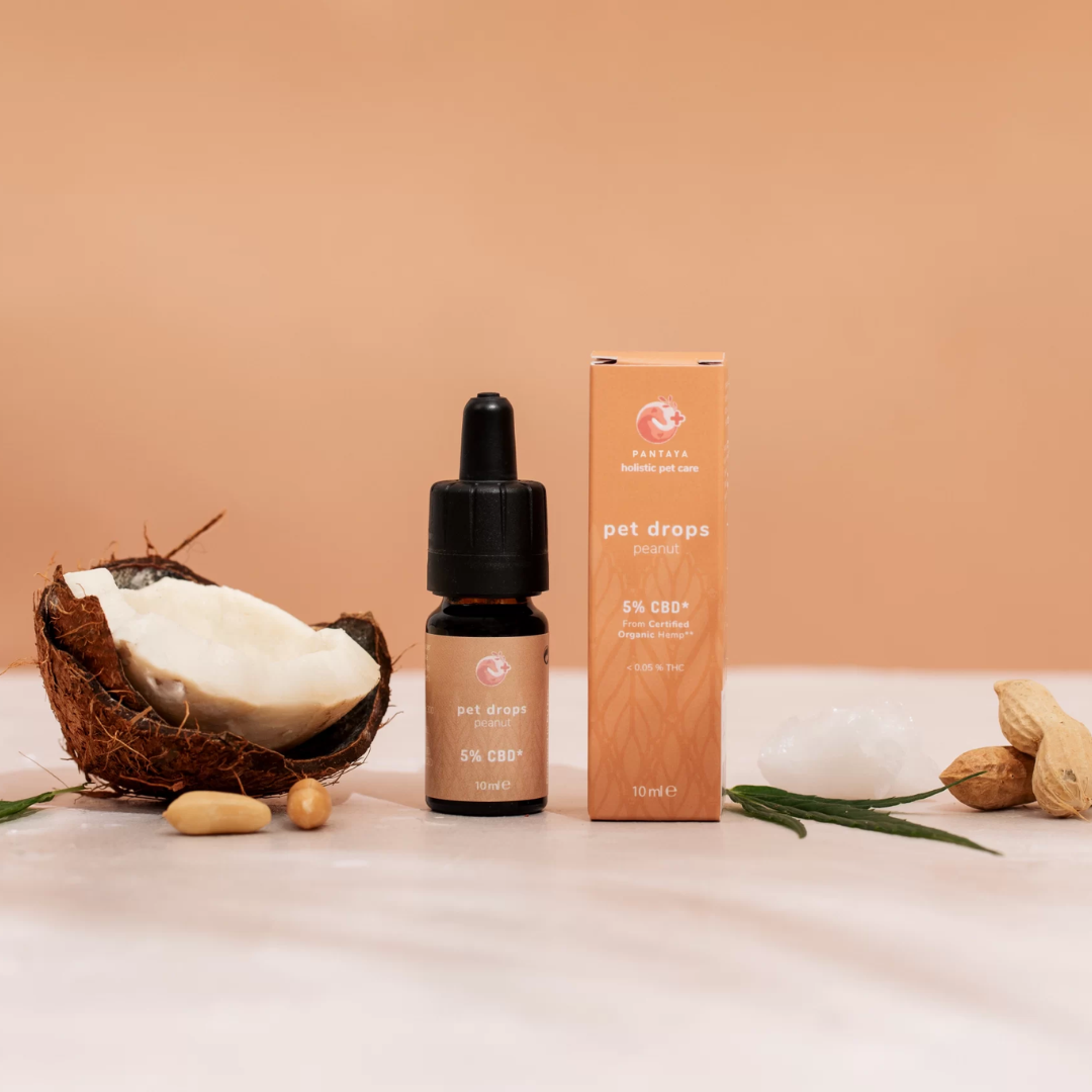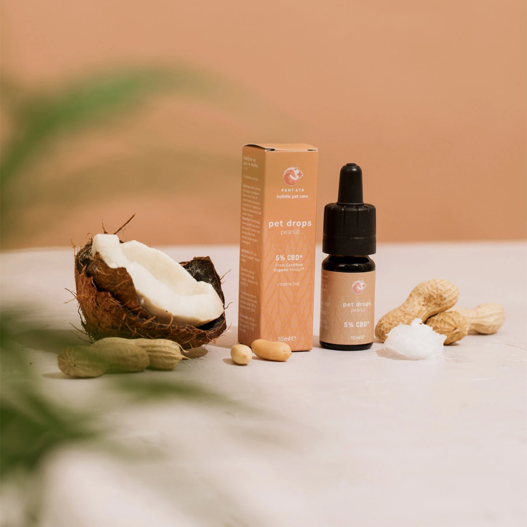 Pantaya CBD kapljice za živali z aromo arašidov (jakost 5 %) so namenjene psom, ki tehtajo več kot 10 kg. Gre za vrhunski izdelek, pridobljen s superkritično CO₂ ekstrakcijo iz ekološke industrijske konoplje, razredčen v MCT olju za visoko absorpcijo. Vsebuje širok spekter kanabinoidov, kot so CBD, CBDA, CBDV, CBG, CBGA, CBN in CBC, ki v sinergiji pozitivno vplivajo na zdravje tvojega ljubljenčka.