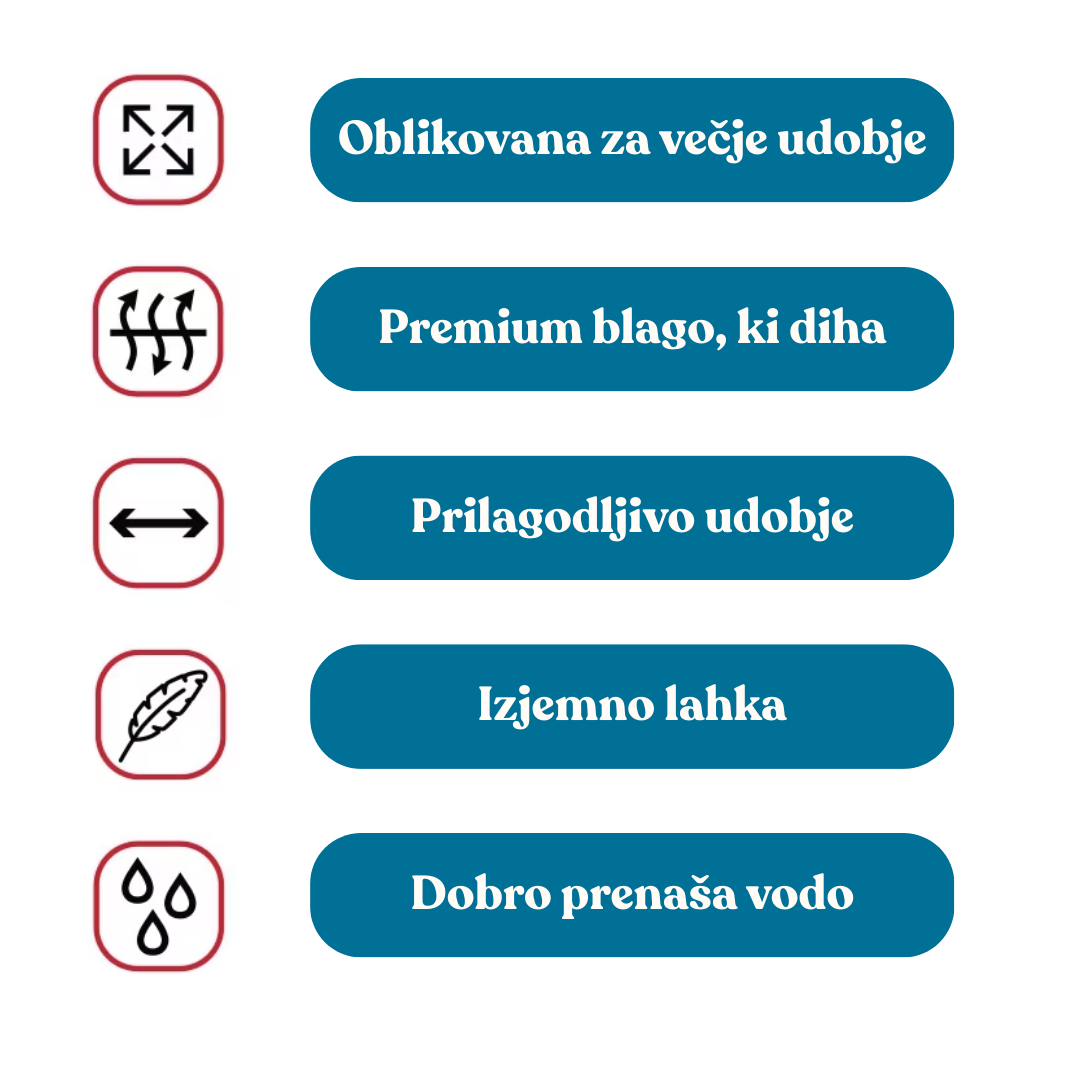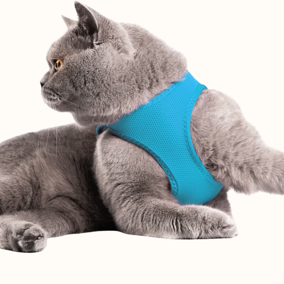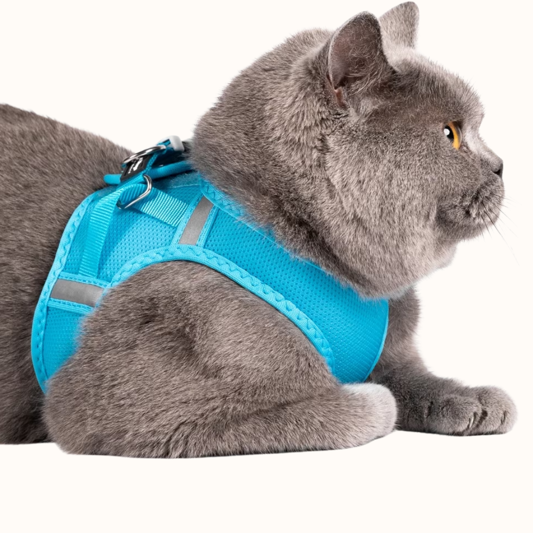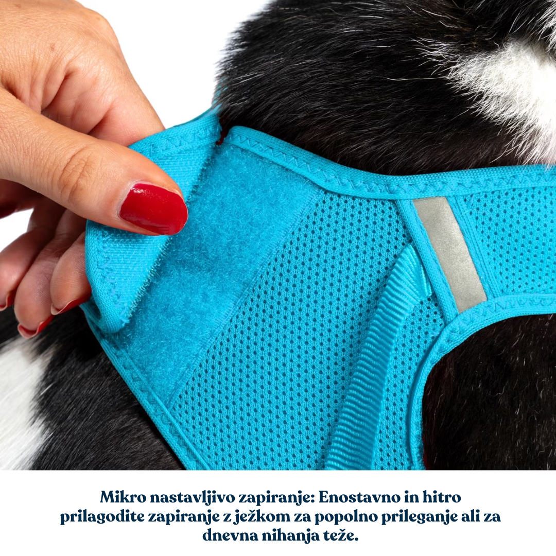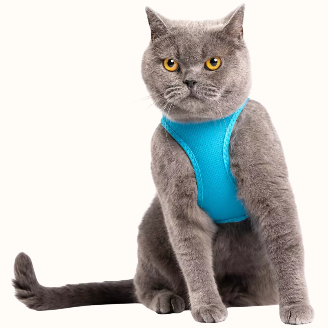 Oprsnica je izdelana iz premium poliestrske mesh tkanine, ki je mehka, izjemno lahka in zračna. 3D kroj se naravno prilega telesu mačke ter zagotavlja anatomsko pravilno prileganje brez tiščanja ali drgnjenja. Zaradi dobrega pretoka zraka preprečuje pregrevanje in je primerna tudi za toplejše dni.