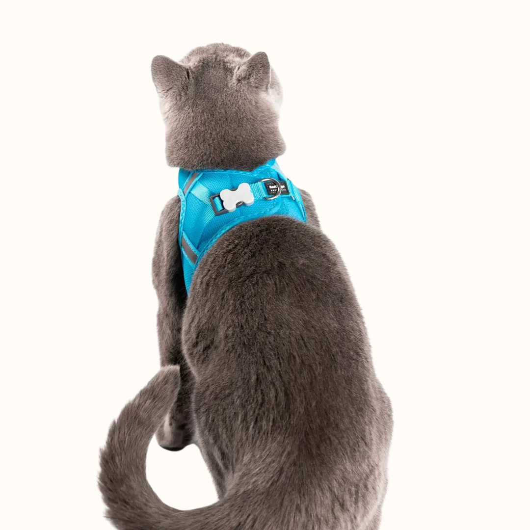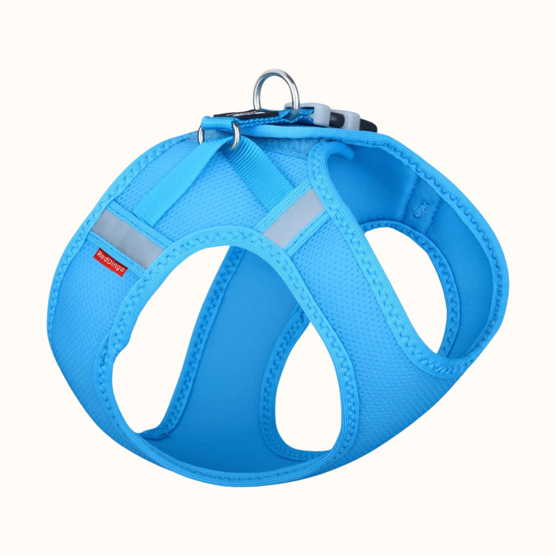 Red Dingo Mesh oprsnica za mačke modra je popolna izbira za mačke, ki ne marajo oprsnic, ki se natikajo čez glavo. Zaradi “step-in” zasnove mačka preprosto stopi v oprsnico, vi pa jo zapnete na hrbtu – hitro, mirno in brez nepotrebnega stresa.