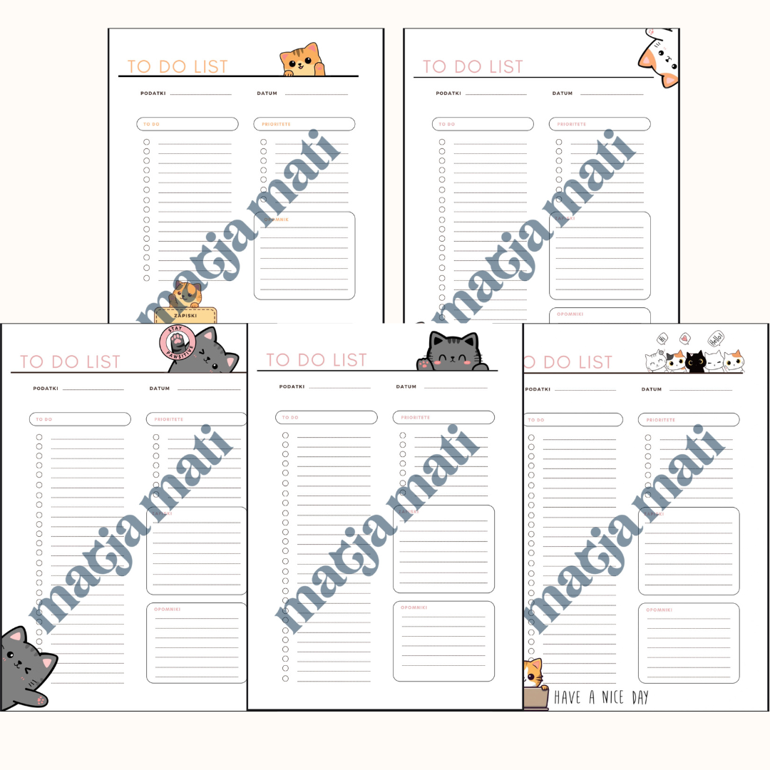 Organizirajte svoje obveznosti na ljubek in učinkovit način z našim To-Do seznamom z motivom mačk. Prenesite zdaj in začnite načrtovati s stilom! 🐾
