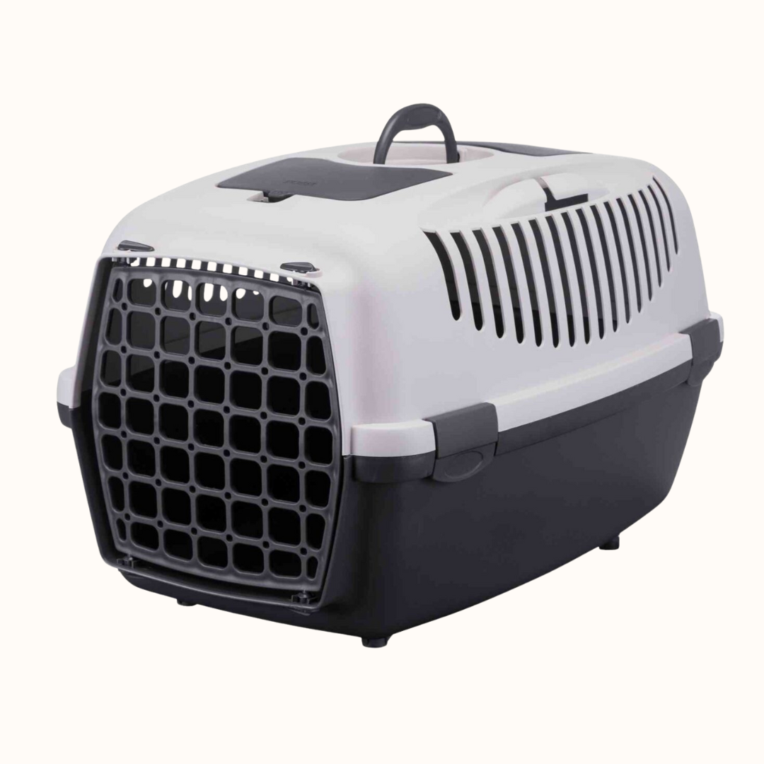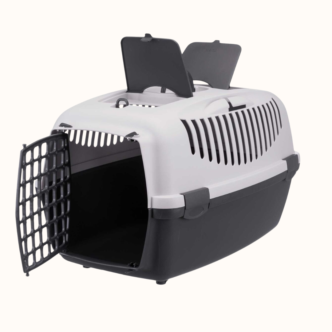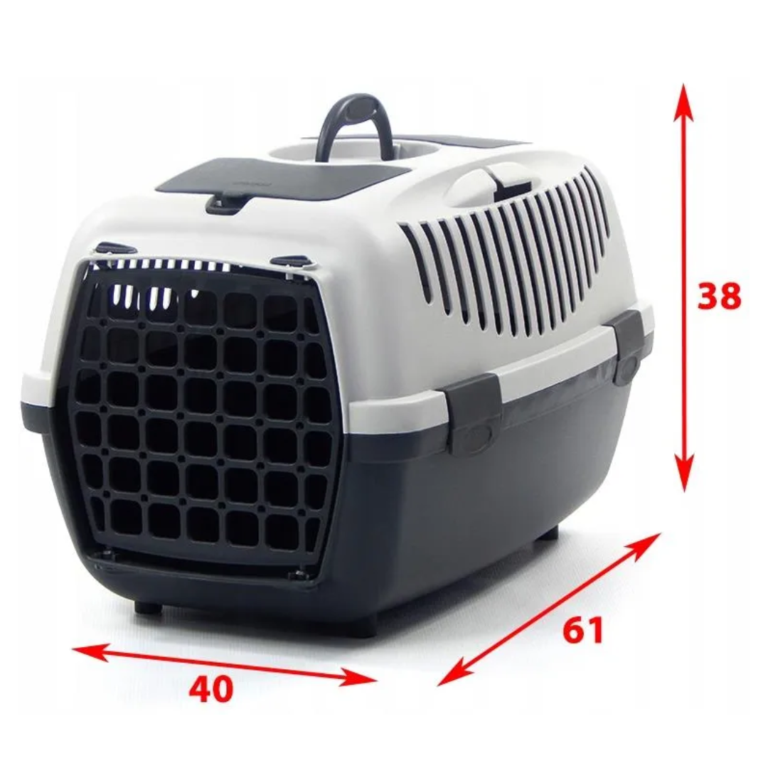 Ker je transportni boks sestavljen iz dveh delov, ga lahko hitro in enostavno sestaviš ali očistiš. Njegove mere (61 × 40 × 38 cm) omogočajo dovolj prostora, da se žival lahko udobno uleže, vstane in obrne – kar je ključno pri izbiri prave velikosti. Primeren je za uporabo doma, v avtomobilu, na vlaku ali letalu (prosimo, preveri zahteve posameznih prevoznikov).